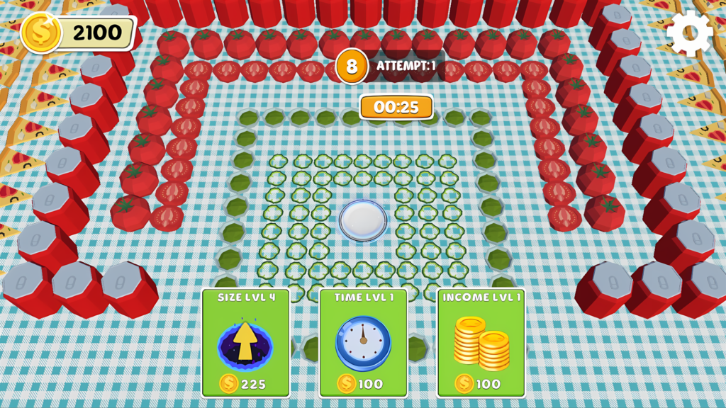 Це проста гіперказуальна гра, де гравцю треба збирати тарілкою їжу. Більше їжі → більший розмір → можна збирати ще більше їжі. Процес відбувається доти поки не закінчиться час.